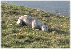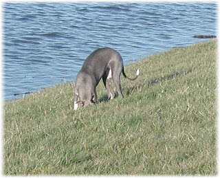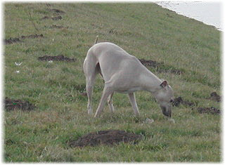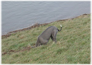 Auch Leroy schaut mal in die interessanten Löcher am Deich. |