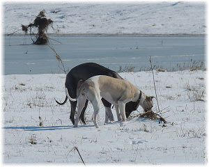 Nach einem langen Winter gab es Anfang März ein paar Vor-Frühlingstage. Die Auewiesen an der Elbe luden wieder zum "Whippetsein" ein - unsere kleine Schwedenmaus Lotta muss das alles noch besonders auskosten. Sonne kannte sie bis dahin kaum, aber besonders schön fand sie, als nur eine Woche später der Winter zurückkehrte... | ||
