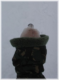Des Rätsels Lösung: Ironman trägt seinen dicken, schwedischen "Nahkampfmantel", weil er mit seinen knapp 13 Jahren nicht mehr so durch den Schnee tobt. | |
