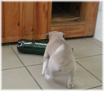 Günni entdeckt da was. Eine Plastikflasche - macht schön Geräusche beim Spielen! |