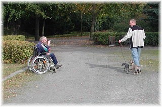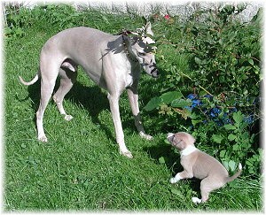 Schönes Hundeleben Harry und Tess sind inzwischen voll ins normale Leben integriert. Sie sind absolut stubenrein und melden sich, wenn sie raus müssen. Sie erhalten die übliche Erziehung, die ein kleiner Whippet braucht, denn von Anfang an müssen sie ihre Grenzen kennen und wissen, was sie dürfen und was nicht. Auch wenn das mit den beiden Kleinen prima funktioniert, suchen wir für Harry noch immer ein liebevolles Zuhause. |