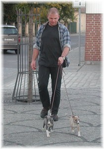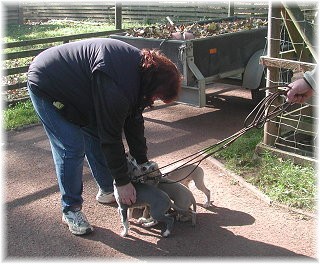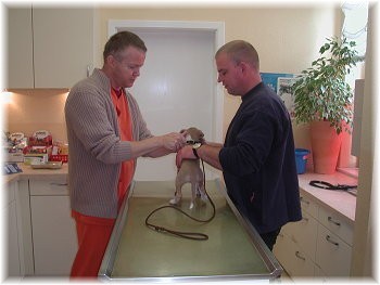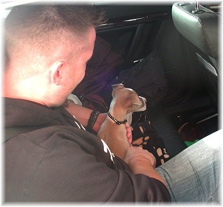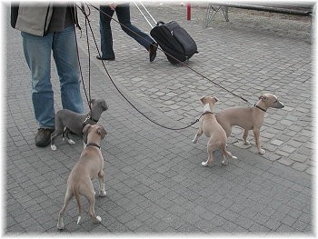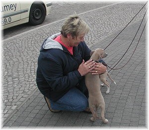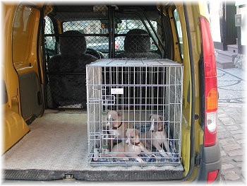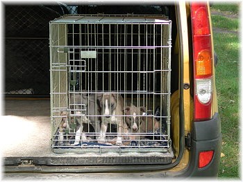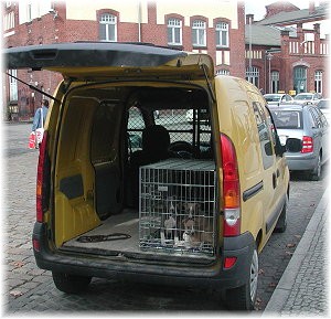 Time for a Good-Bye: Jupp und Harry mit ihren Besitzern. Beide haben Decken mitbekommen, die so schön nach "Zuhause" riechen - auch das gehört zum Abschiedsritual. |