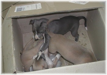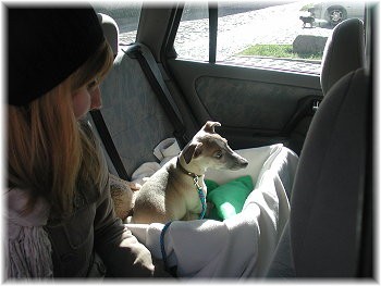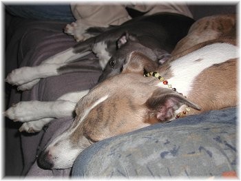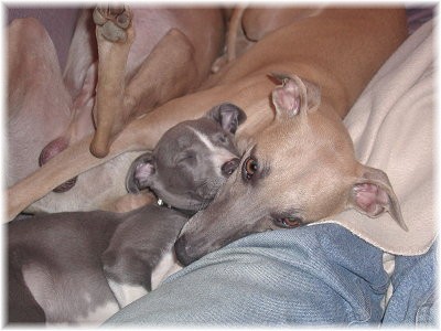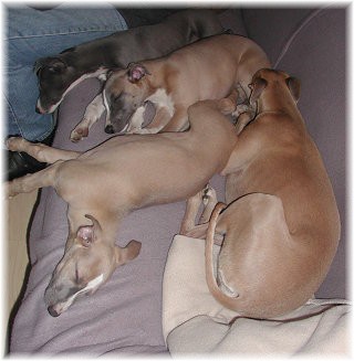 Die anderen suchen bei Frauchen einen Kuschelplatz. | |