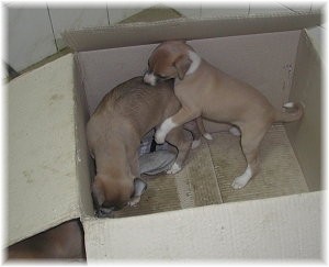 Couchidylle In den vergangenen Tagen haben wir uns im Einzeltraining mit den Flöhen beschäftigt (das Wetter eignete sich nicht zum Fotos machen). Dazu gehörte u.a. der Besuch im Zoo-Geschäft oder im Lotto-Laden. Abends kommen sie mit auf die Couch, gehen dann wie die Großen nochmal raus, um ihre Geschäfte zu erledigen und schlafen nachts ohne Probleme in der Box durch. Und morgens erledigen sie wie die Großen alles draußen. |