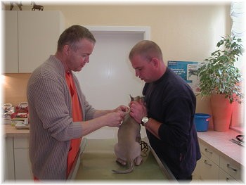 Abschiedsritual: Am Abend vor dem Auszug werden die Kleinen gebadet und die Krallen geschnitten: Jupp und Harry. |