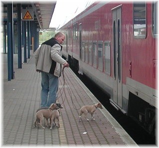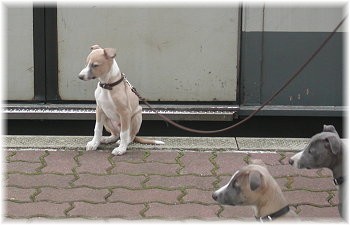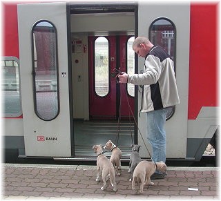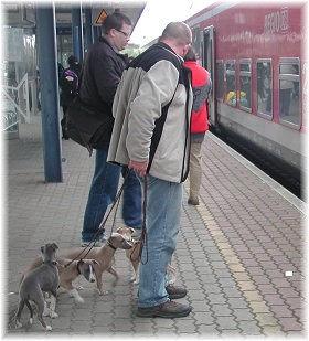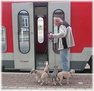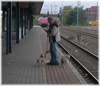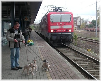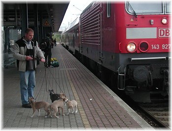 Bahnhof In den vergangenen Tagen stand Einzeltraining auf dem Programm. Jeder Floh ging mit einem von uns alleine durch den Park oder die Stadt oder im Berufsverkehr an der B1 lang. Diese Aufgaben haben sie bestens gemeistert. Somit stand heute der Besuch des Bahnhofs an. Dort gab es auch wieder viel zu gucken. |