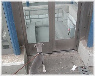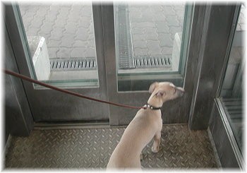 Und Herrchen verschwindet mit den Flöhen wieder im Fahrstuhl. |