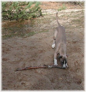 Ihren Bruder Günni - mit neuem Stöckchen. |
