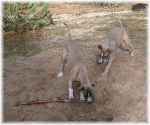 Dann gönnen sich die beiden Jungs jeder erstmal ein eigenes Stöckchen... |