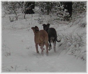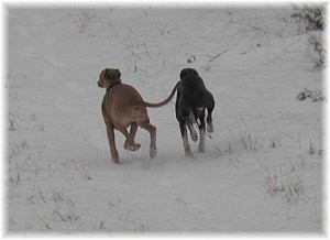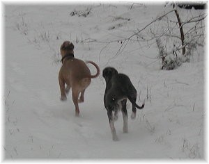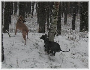 Der erste Schnee Heute haben Tess und Harry den ersten Schnee erlebt. So richtig begeistert waren sie von dem weißen, kalten Zeug anfangs nicht - später ging's zuhause dann nochmal richtig lustig los. Hier ein paar Eindrücke aus dem Wald. |