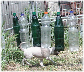Joya übt Slalom durch den Flaschenvorhang. | |