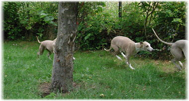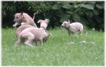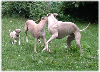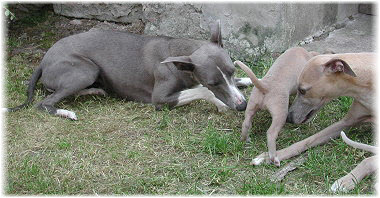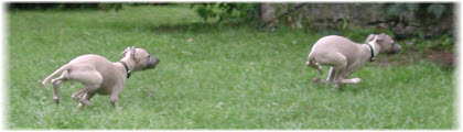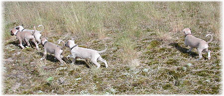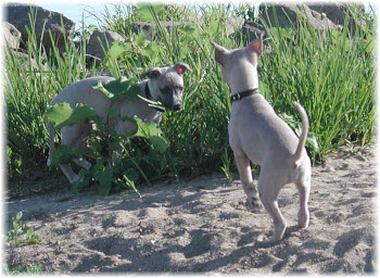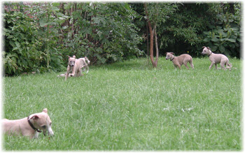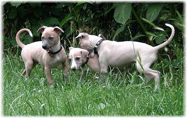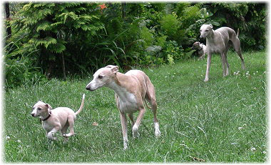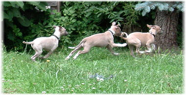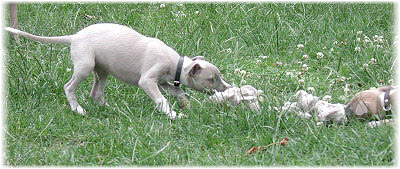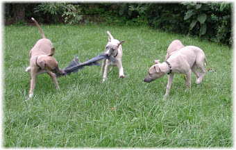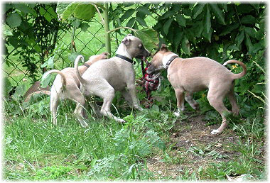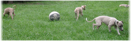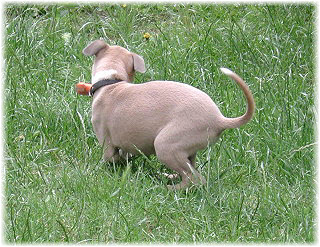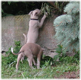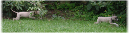 Gartenimpressionen Aus den Flöhen werden kleine Hunde. Jeden Tag erhält jeder Einzelne sein "persönliches Training" an der Leine. Wir gehen durch die Stadt, durch den Park, an der B1 lang, jeden Tag mit einem von uns einen anderen Weg. So können wir individuell auf verschiedene Situationen eingehen. Gemeinsam toben und richtig Gas geben können die Kleinen nicht nur in ihrem Auslauf, sondern auch bei uns im Garten. Davon zeigen wir hier mal wieder ein paar Impressionen. |