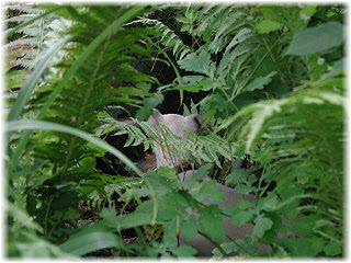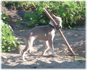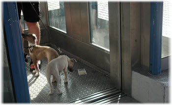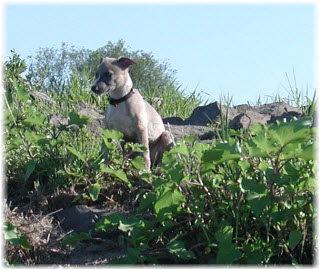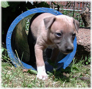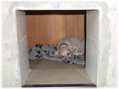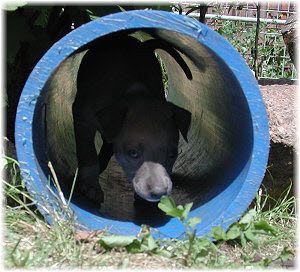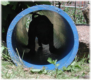Hank in der Röhre - da passt er noch durch. Im Gegensatz zu Tess, die ist einfach zu groß dafür geworden. |