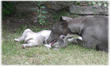 Kopfüber ins Vergnügen! Und Hank kostet mal Schwester Blondie. | Nein, Joya, Nats Kopf passt nicht in Deine Schnauze! | |