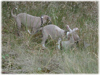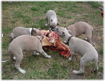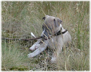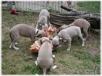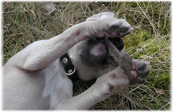 mal anders Vom wöchentlichen Besuch bei "HuFu-Mann" Klaus brachte Herrchen heute einen besonderen Leckerbissen mit: einen schönen Knochen. Während den großen Hunden das Wasser im Maul zusammen lief, mussten die kleinen Rangen erstmal schauen, riechen und kosten, was das wohl Leckeres ist. Sie hatten dann ein paar Tage etwas davon. |