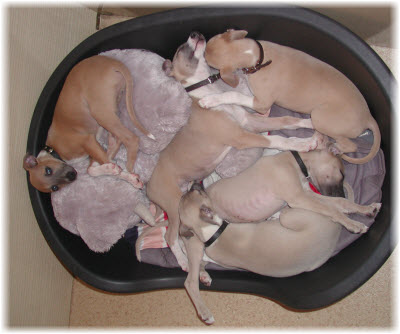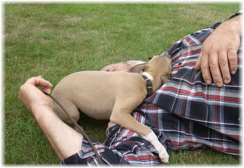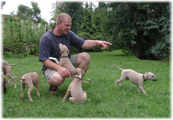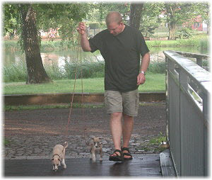 Und Schluss! Heute ist Nat ausgezogen. Für uns war das natürlich kein leichter Abschied, war er doch inzwischen ein vollwertiges Familienmitglied und lief mit seiner Schwester Joya, die bei uns bleibt, zwischen den Großen mit. Er ist stubenrein und kennt das Leben als normaler kleiner Hund. Wir sind uns sicher, dass seine Besitzerin die richtige Frau für ihn ist. Wir wünschen ihm viel Spaß in Limburg und freuen uns auf viele Berichte. Die anderen drei Flöhe haben ihre Familien inzwischen perfekt im Griff - oder war es doch umgekehrt? Nun ist es also an der Zeit, dieses Tagebuch beruhigt zu schließen. Ein schönes Gefühl. |