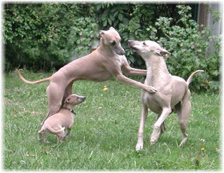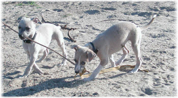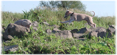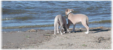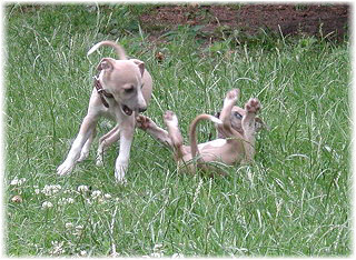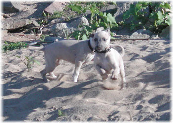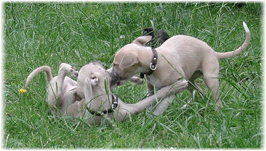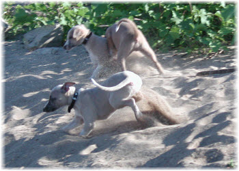 Weiter geht's - wildes Toben! Im Sand besonders klasse. | ||