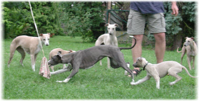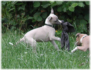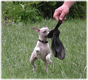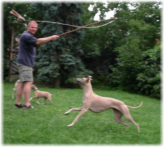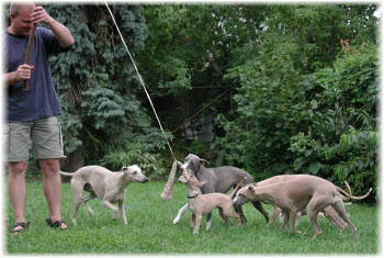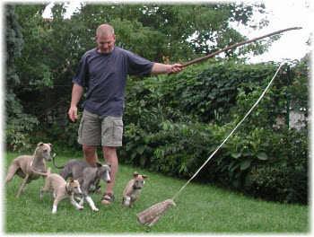 Dann holt Herrchen die Reizangel raus - ein lustiges Spiel für Groß und Klein! | ||