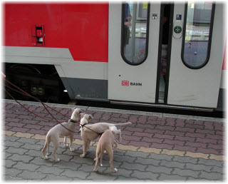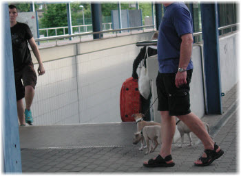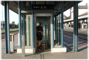 Die Lütten gehen mit in den Fahrstuhl. Bono entdeckt etwas Interessantes. | Auf dem anderen Bahnsteig. | |