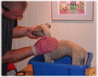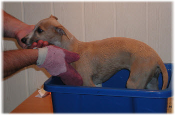 Badetag für Hank am Samstag... | ... damit er schön riecht ... | |