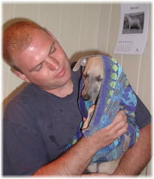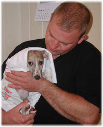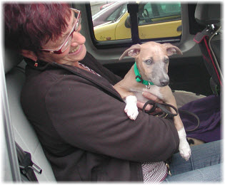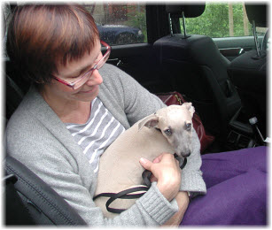Bono beim Baden: die Begeisterung hielt sich in Grenzen. Aber das gehört bei uns dazu wie das Krallenschneiden. | Bonos neues Frauchen ist froh: Endlich ist es soweit! | |
