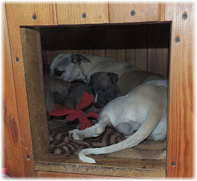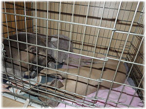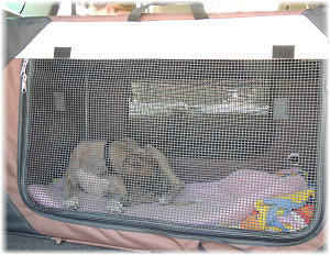 auf der Decke, die Lica mitbekommt, gem�tlich gemacht. Flip und Caisa schlafen in der Nachbar-Box. |