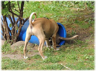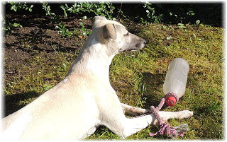 Bitte, Herrchen, gib mir das Ding! | Los! | Caisa beobachtet das Treiben von Flip und denkt sich ihren Teil. |