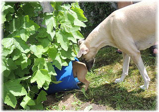 Lica untersucht derweil den Garten. | Und findet irgendwas ganz Interessantes. | |