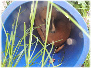 Nachdem wir die kleinen M�use drinnen ans Katzenklo gew�hnt haben, was schon ganz gut funktioniert, sind sie heute ein paar Mal drau�en im Welpenauslauf gewesen. Hier gibt es viel zu erkunden und die liebe Verwandschaft stellt sich auch schnell ein. |