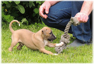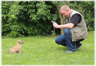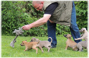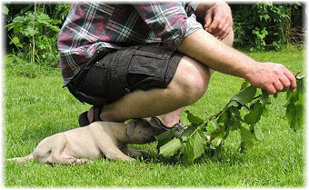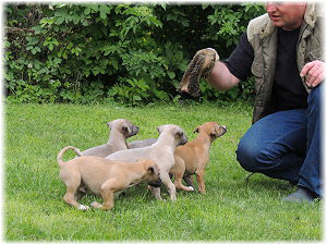 Dann beginnt Herrchen ein lustiges Spiel. | Sieben Wochen und schon "wilder Jagdtrieb": der sonst so gem�tliche Lasse. | |