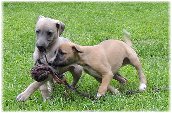 Das gef�llt Ole nicht, er packt mit an. | Caisa will auch mal. | Aber Ole holt es sich wieder. |