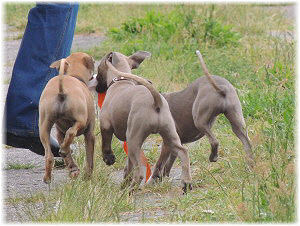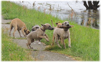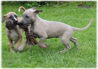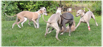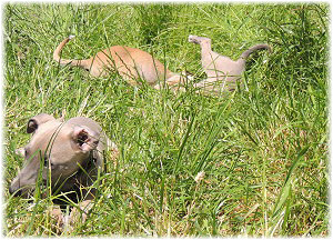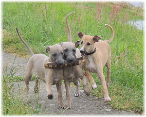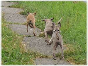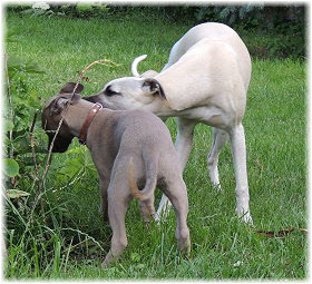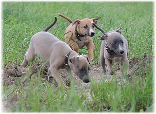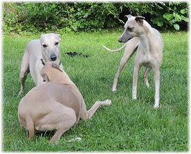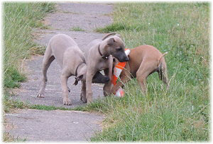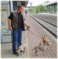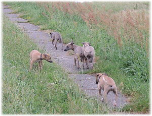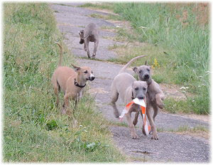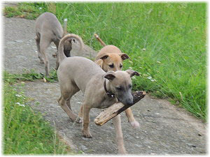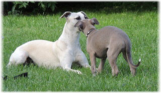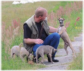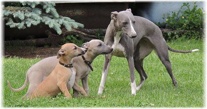 Flip zieht aus Nachdem Flip und Lasse uns im August in den Urlaub nach Schweden begleitet und dort viel erlebt haben, hat sich f�r Flip ein liebevolles Zuhause gefunden. Heute war der Tag des Auszugs und seine neue Freundin, eine Whippet-Mischlingsh�ndin, freut sich sicher �ber den lustigen neuen Freund. Vielleicht k�nnen wir Flip eines Tages auch auf einer Ausstellung oder einem Coursing sehen, zumindest sind seine neuen Besitzer nicht abgeneigt, sich das wenigstens anzuschauen. F�r Lasse haben wir noch nicht das richtige Zuhause gefunden. Wir sind von dem kleinen Mann so �berzeugt, dass wir ihn nur an liebevolle, aber ausstellungsinteressierte Menschen abgeben m�chten. So lange bleibt er bei uns. Damit schlie�en wir dieses Tagebuch und w�nschen Ole in Hamburg, Lica in Eichwalde, Mika in K�nigslutter und Flip in Wulften viel Spa� in ihren Familien und ein gl�ckliches Leben! Wir freuen uns auf Bilder und Berichte! |