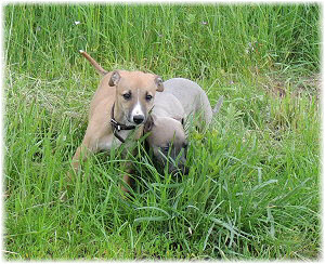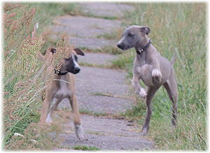 Caisa zieht aus Heute ist Caisa in ihr neues Zuhause gezogen. Sie wohnt dort zusammen mit einer anderen Whippeth�ndin und wird, wenn sie sich weiter gut entwickelt, auch ausgestellt. Vielleicht sehen wir Mika, wie sie jetzt hei�t, auch das eine oder andere Mal auf dem Coursing-Feld. Uns w�rde das freuen. |