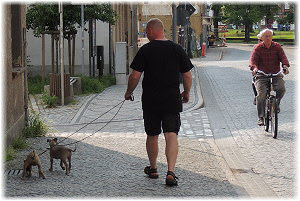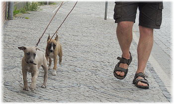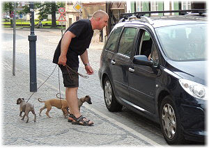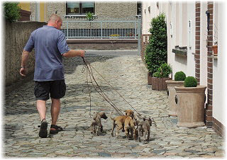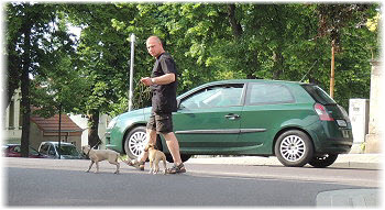Flip wissen es: Es ist Herrchen, der bestimmt lecker Geh�ckertes dabei hat. |