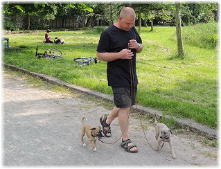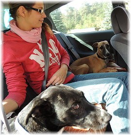 Lica mit ihrem neuen Frauchen und Kn�. Zuhause wartet der Rest der Familie. |