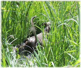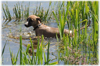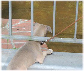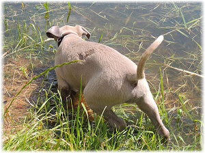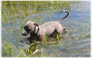 Lica beim Baden. Die Ausfl�ge am Elbe-Strand und die "Untertunnelung" des Welpenauslaufs machen diese Ma�nahme notwendig... ;-). | Armes M�dchen! |