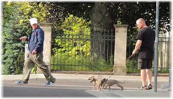 Auf dem R�ckweg bietet Herrchen eine Alternative an. | Ole und Caisa finden das raschelnde Laub toll. | Weiter geht's. |