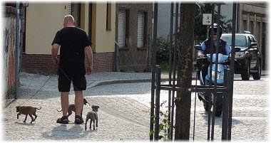 Herrchen ist immer ein guter Anlaufpunkt. | Tess guckt zu, wie... |