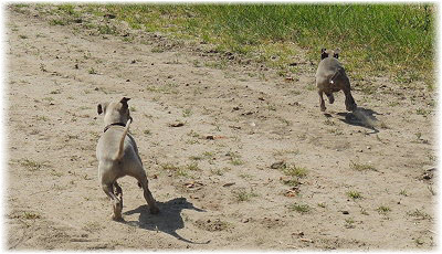 Caisa und Flip probieren nochmal "schnell rennen". | Pass sch�n auf, Caisa! - Auf wen? | Vielleicht auf Lasse mit dem Tannenzapfen? |