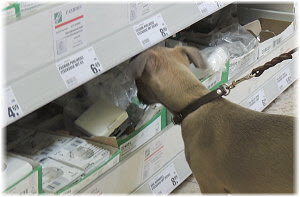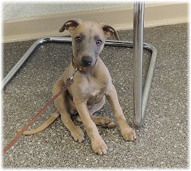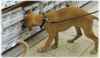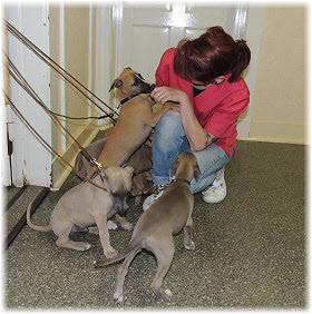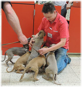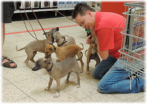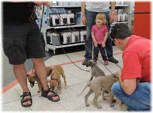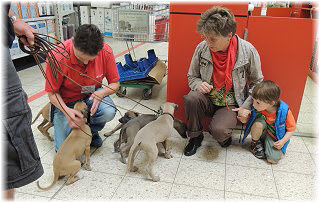 Endlich wieder Welpenknuddeln! Die nette Verk�uferin hatte schon mit dem C-Wurf gekuschelt. |