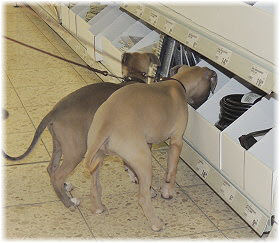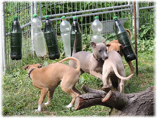Guck mal Herrchen, wir k�nnen auch Krach machen. Die Flaschen klappern so sch�n, wenn wir schnell durchrennen! |