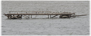 So Fl�he, hier geht es hoch zum Deich! - Links sieht man noch die Sands�cke, die eine Sickerstelle abdichteten. |