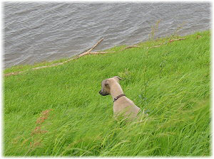St�rmische Elbe Das Wetter lud nicht wirklich zum Rausgehen ein, aber so wie unsere erwachsenen Hunde sind die Fl�he gew�hnt, jeden Tag rauszugehen. Entweder gibt es eine Runde an der Leine einzeln durch die Stadt oder an der B1 lang oder einen gemeinsamen Ausflug. So fuhren wir heute mit ihnen zur Elbe, wo sie aufgrund des Hochwassers noch nie waren. Derzeit f�hrt die Elbe nur noch normales Hochwasser, wie es zum Winterende nach der Schneeschmelze �blich ist. Das st�rmische Wetter st�rte die munteren Kleinen wenig, gab es doch wieder viel zu entdecken. |